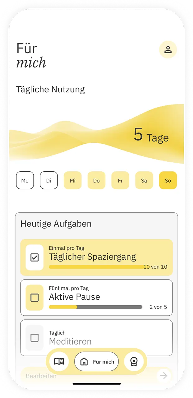 Das Design vereint Klarheit, Einfachheit und emotionale Ansprache. Das Interface folgt einer klaren Designlogik, die Information, Motivation und Interaktion in Balance bringt.